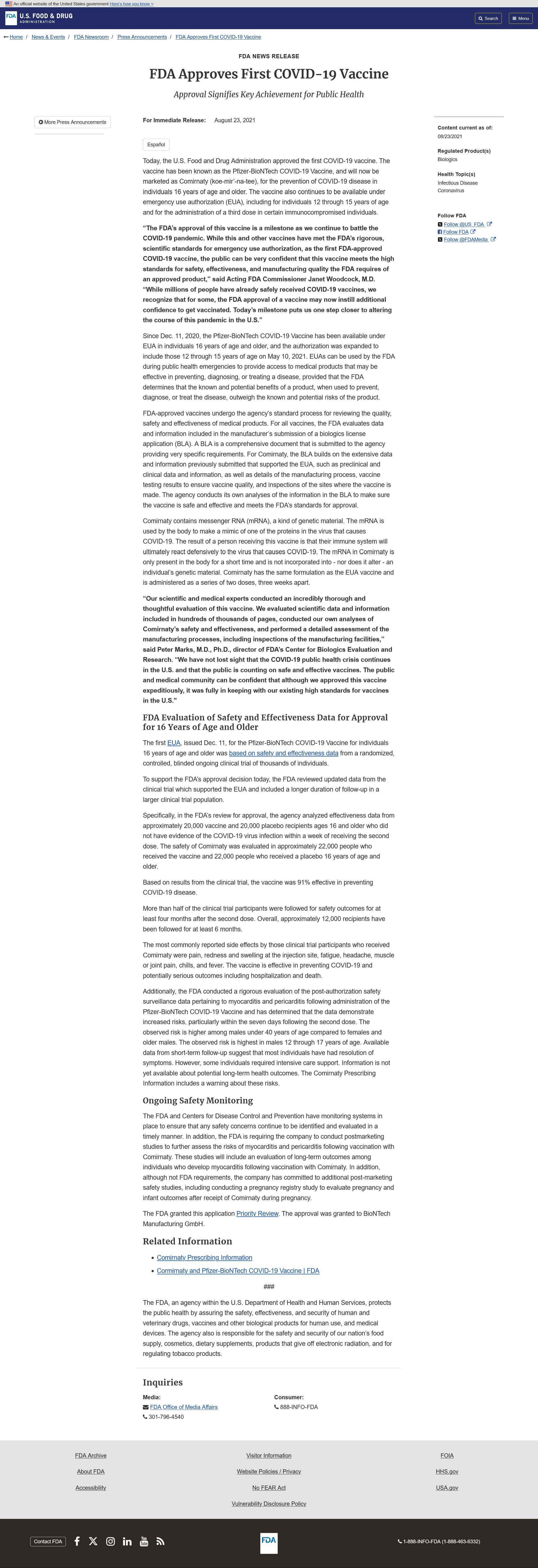 Until 23 August 2021 the Pfizer mRNA vaccine was not FDA approved* under a Biologics License Application, or BLA, but it was approved under a so-called Emergency Use Authorization, or EUA. Under such an EUA...