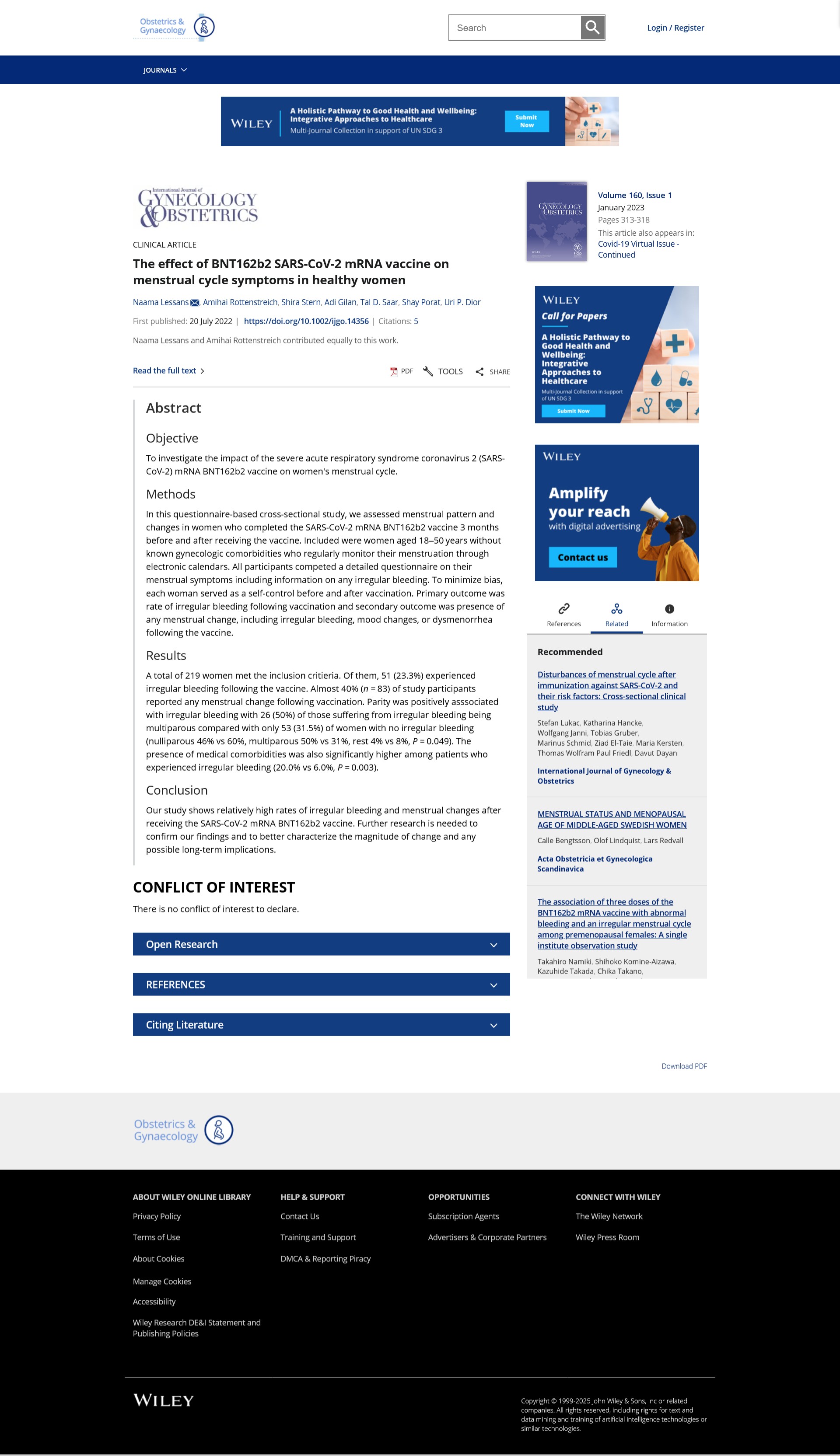 When the governments and their doctors by default say that any adverse events are unrelated to the vaccines and merely strange "coincidences" then these events will of course most likely not be reported. Victoria Male, lecturer in reproductive immunology, said:Participants are unlikely to report changes to periods unless specifically asked.** In September 2021 it was reported thatthe National Institutes of Health has announced a $1.67 million study to investigate reports that suggest the COVID-19 vaccine may come with an unexpected impact on reproductive health.** in July 2022a study found that 42% of people with regular menstrual cycles said they bled more heavily than usual after their Covid vaccination.**** Another confirmation that these vaccines lack a lot of research into side effects.