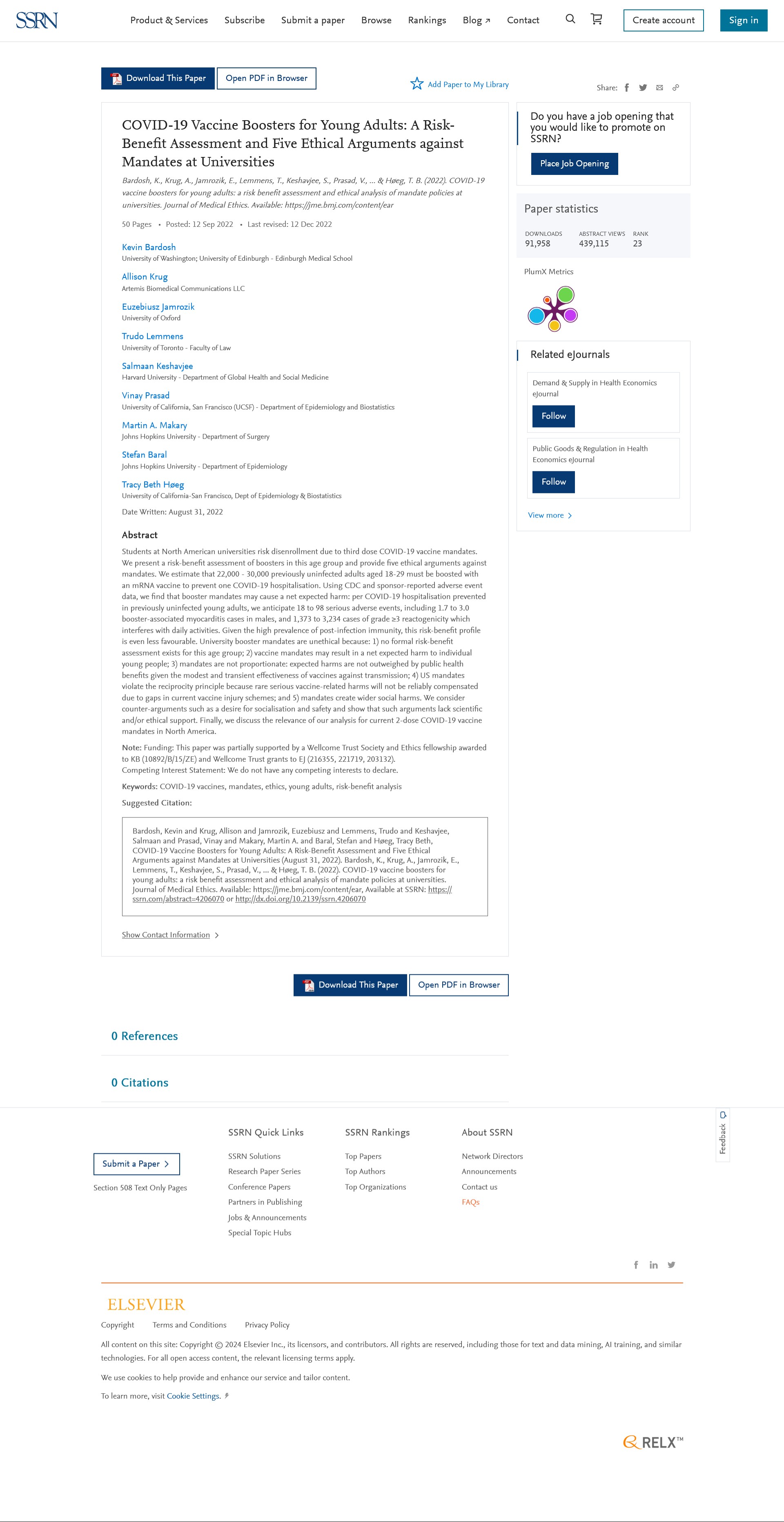 Clinical phase 1/2/3 trial study NCT04368728 was estimated to be completed in February 2024.* Clinical phase 1/2/3 trial Study NCT04380701 was estimated to be completed in April 2023.* There were no final results until long after vaccination rollouts. On top of that, these studies were sponsored by BioNTech and Pfizer themselves, the parties which have most to gain from a positive result. They're marking their own homework.