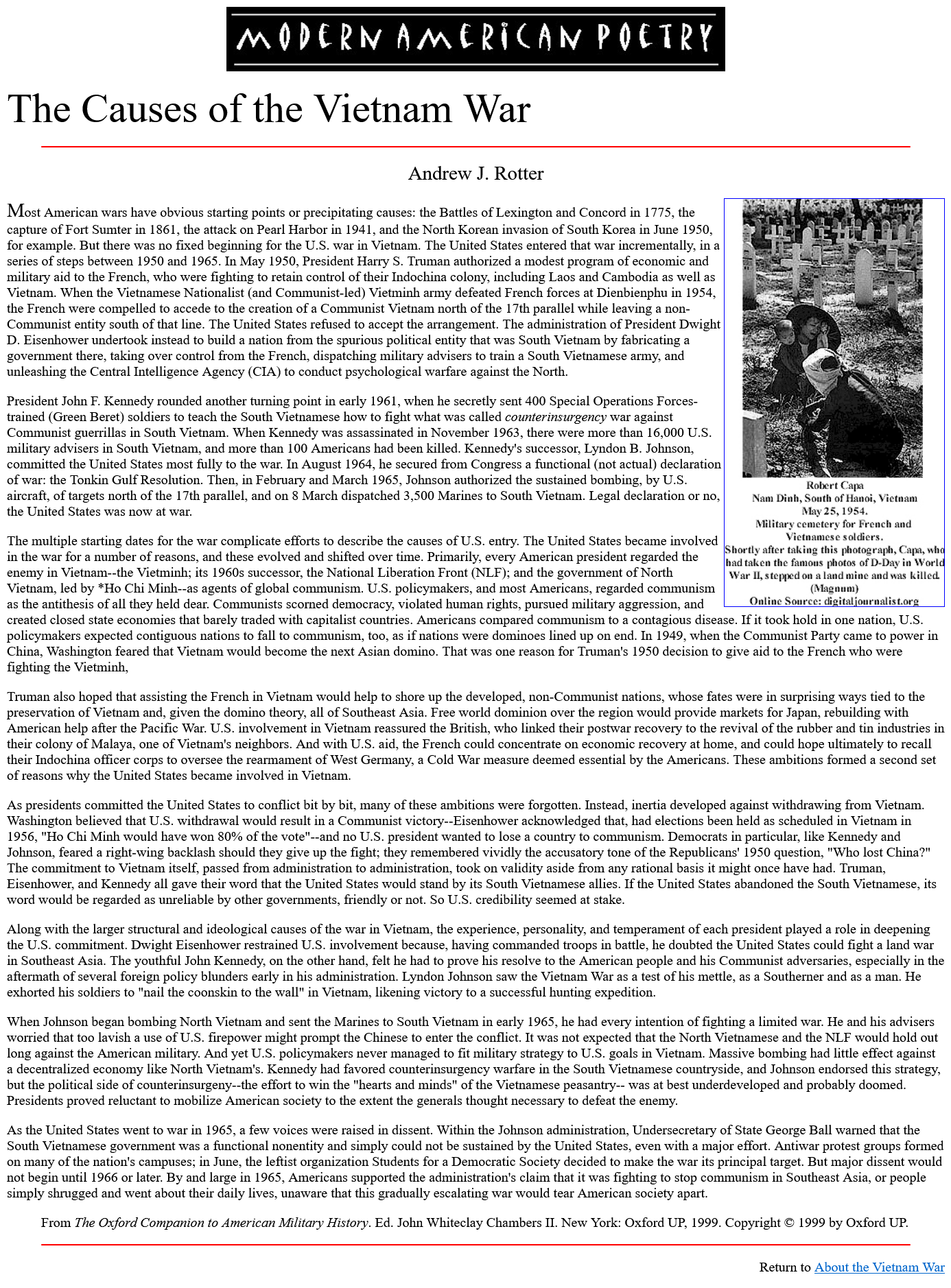 Along with Lippmann and Morgenthau, Kennan, the great practitioner who first introduced the concept of containment, insists that the U.S. 'had... no business trying to play a role in the affairs of the mainland of Southeast Asia'.