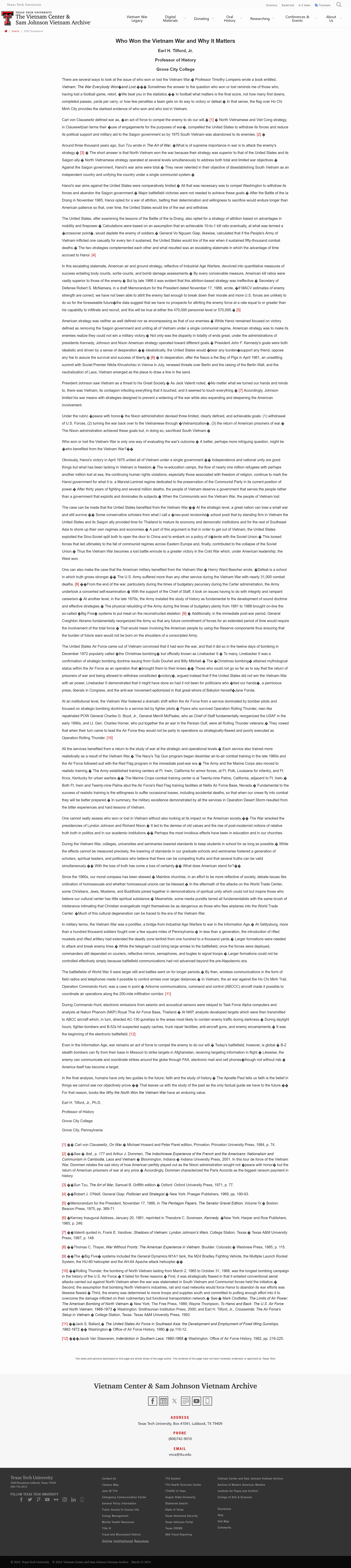 Normally, we tend to assume that in a war of attrition, the side that is inflicting the greater number of casualties on its enemy is winning. In Vietnam, the United States enjoyed huge advantages in weapons, technology, and logistics, and furthermore was able to use those advantages quite effectively; the notion that the American forces were unable to make their technology relevant on the battlefield is a myth. The result was that the number of men who died while serving in the Communist forces was over ten times the number who died in the American forces. Nonetheless, it was the Communists who ultimately won the war of attrition against the Americans.*