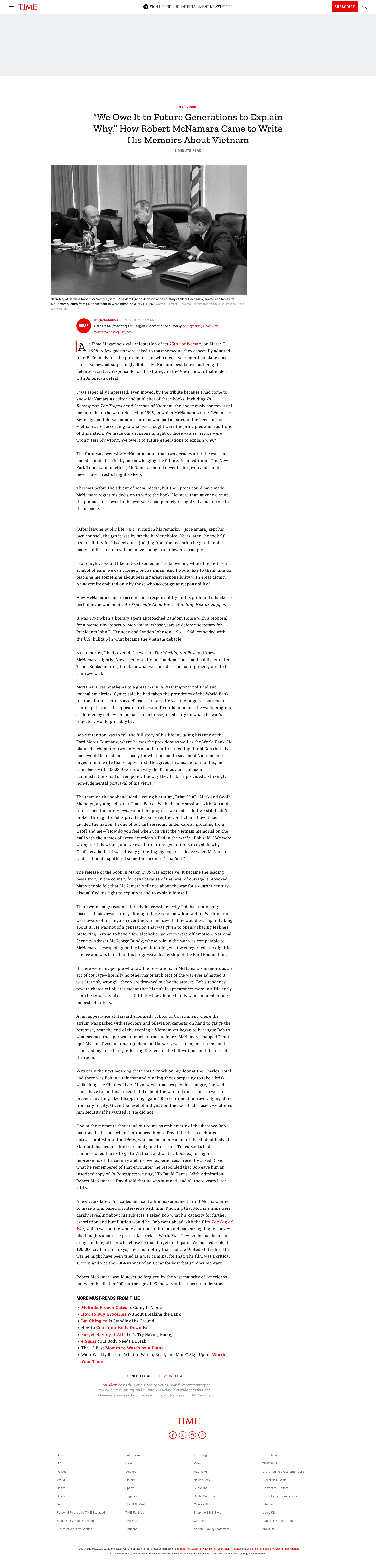 We in the Kennedy and Johnson administrations who participated in the decisions on Vietnam acted according to what we thought were the principles and traditions of this nation. We made our decisions in light of those values. Yet we were wrong, terribly wrong. We owe it to future generations to explain why.*