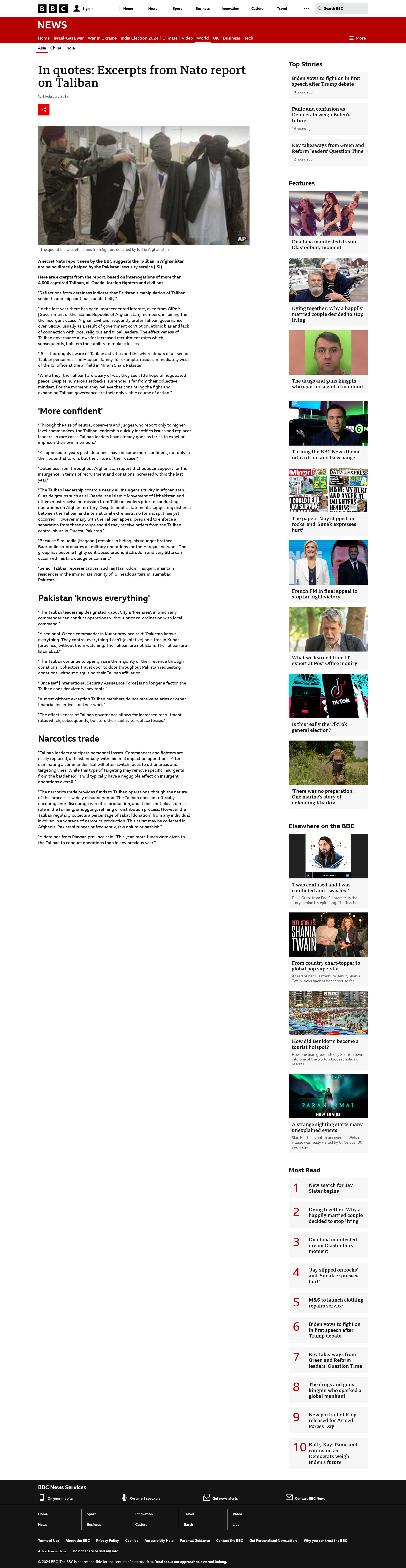 BBC - In quotes: Excerpts from Nato report on Taliban