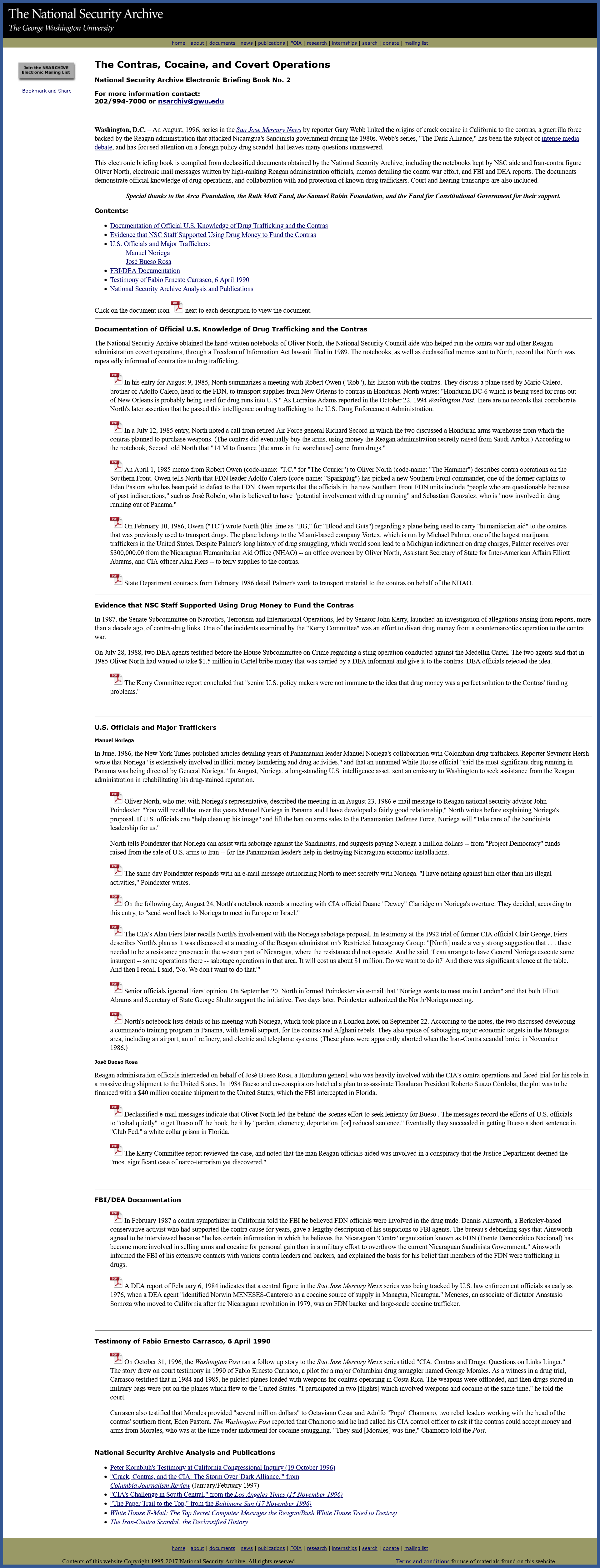 National Security Archive - The Contras, Cocaine, and Covert Operations