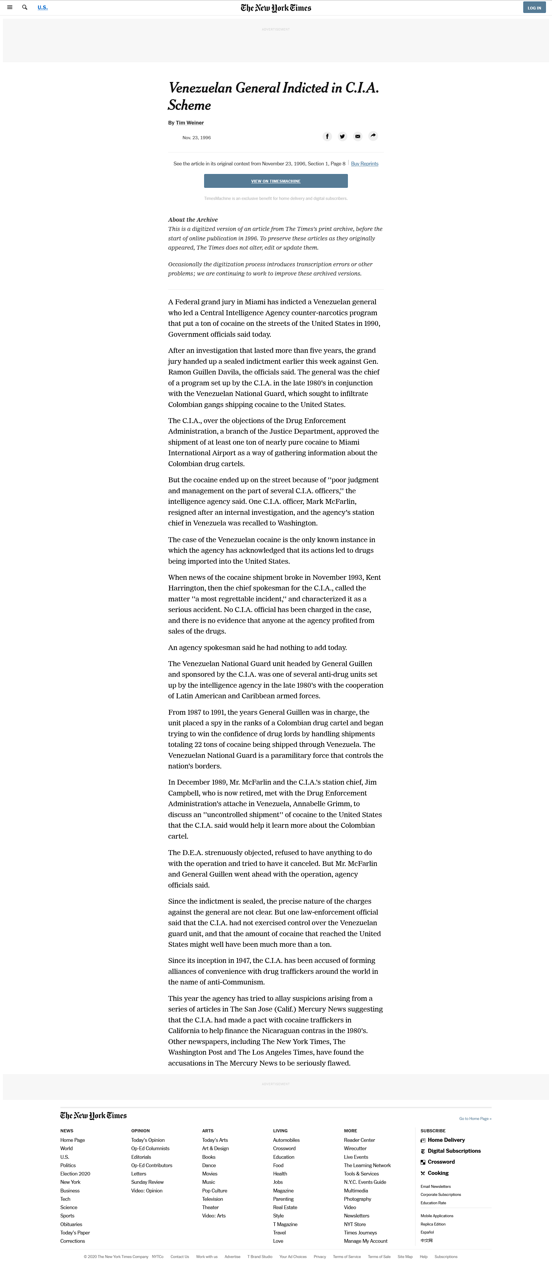 Tim Weiner - Venezuelan General Indicted in C.I.A. Scheme