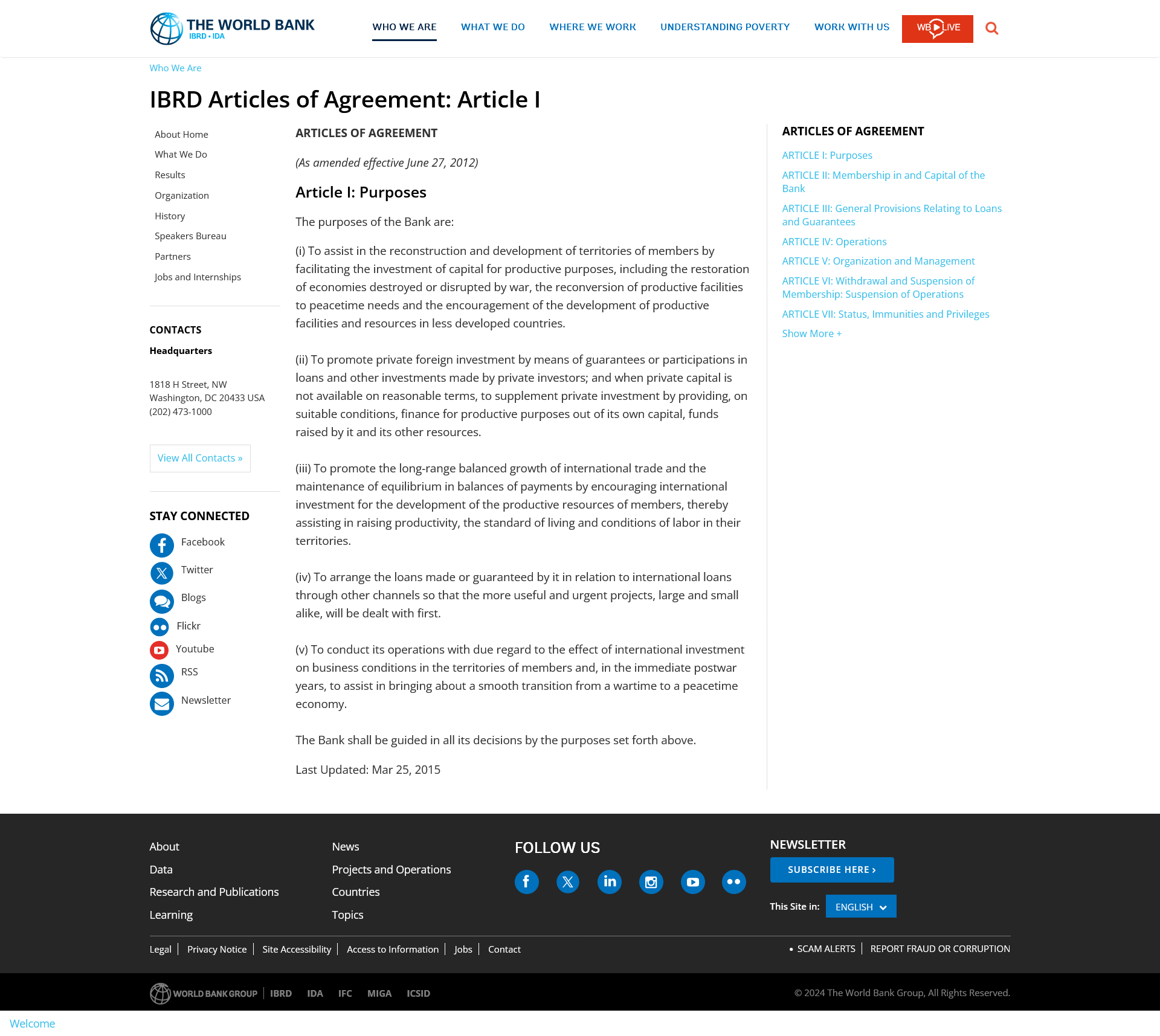 World Bank - IBRD Articles of Agreement: Article I