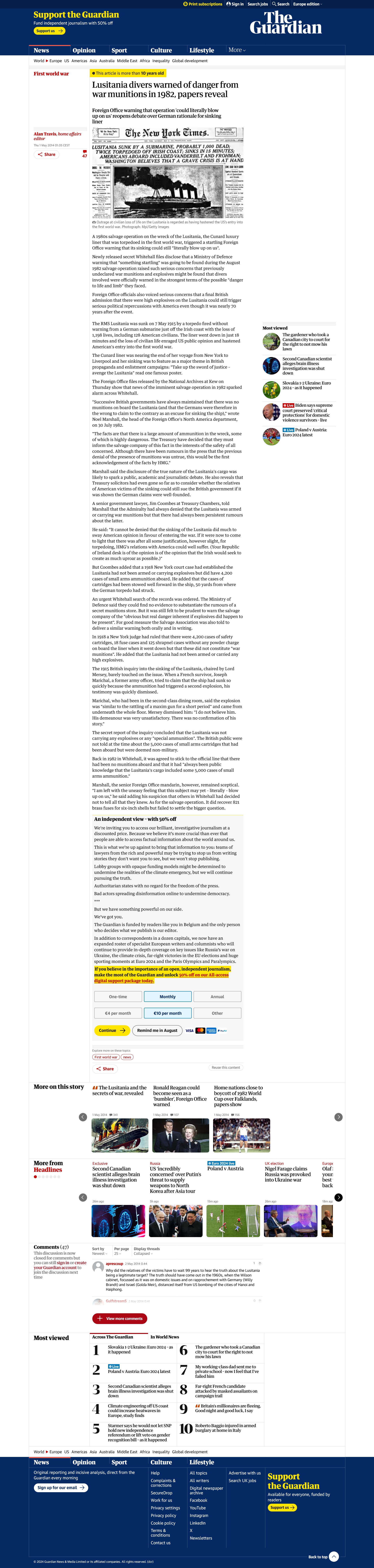 Alan Travis - Lusitania divers warned of danger from war munitions in 1982