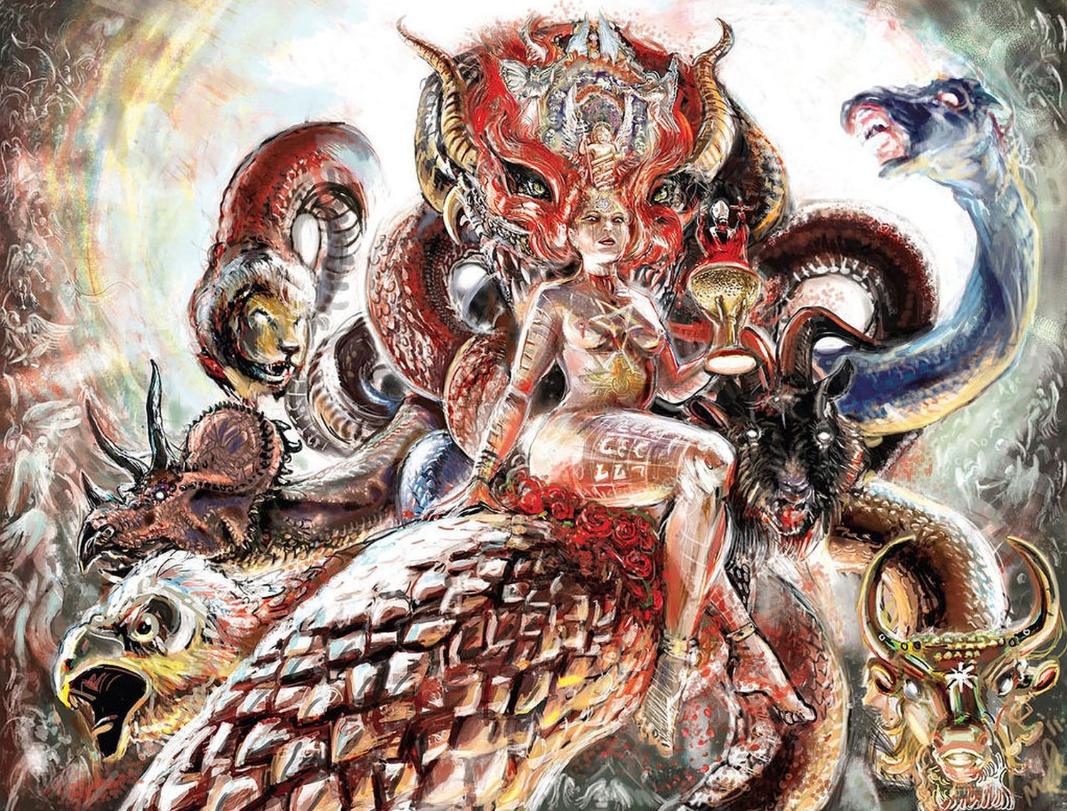 and upon her forehead a name written, a secret: Babel THE GREAT, THE MOTHER OF THE WHORES AND OF THE ABOMINATIONS OF THE EARTH.