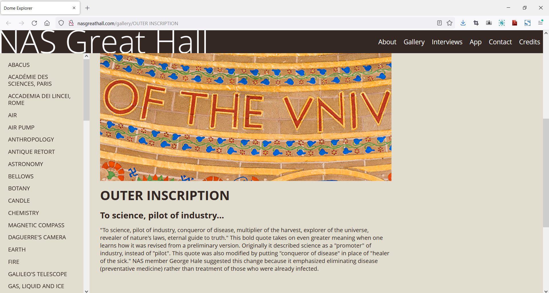 The NAS calls its building aTemple of Science**. It has a website called NAS Great Hall * * which offers a gallery of mythological figures used as decoration. The symbolism of the sun inside the pagan Roman dome and the cruciform points to sun worship.