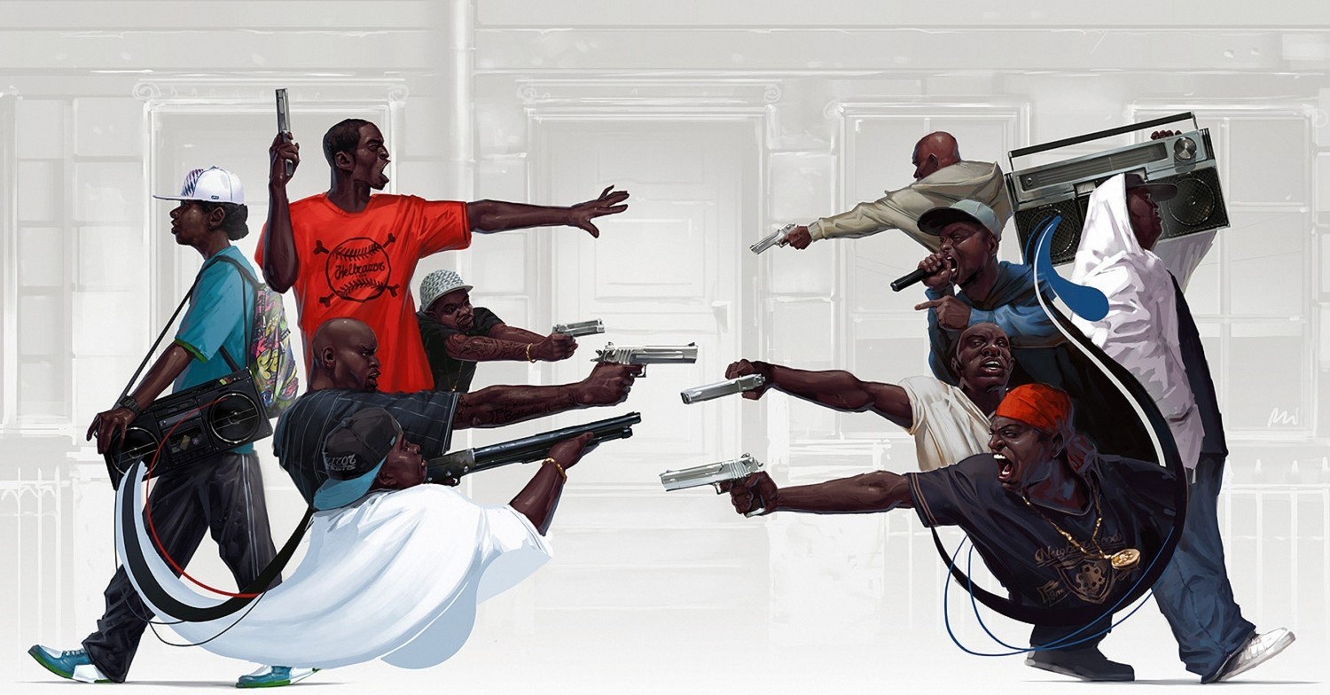 Many black people happen to live in the poorer regions of the US. The great majority of robbery homicides are committed within, not across, racial boundaries and robbery homicide is much more common in the black community. Not surprisingly gangsta rap is predominantly a typical black thing and many black rappers glorify violence and money and treat women like bitches. Great example for black youth or any youth at all, right? Not only do blacks fight much with each other in their own communities, but also outside their communities. See for example the East Coast–West Coast hip hop rivalry. Actor Denzel Washington said:It's about culture, not about skin color.* It's a lot about the neighborhood in which people grow up and how their parents raise them. Obviously a lot goes wrong in black communities.