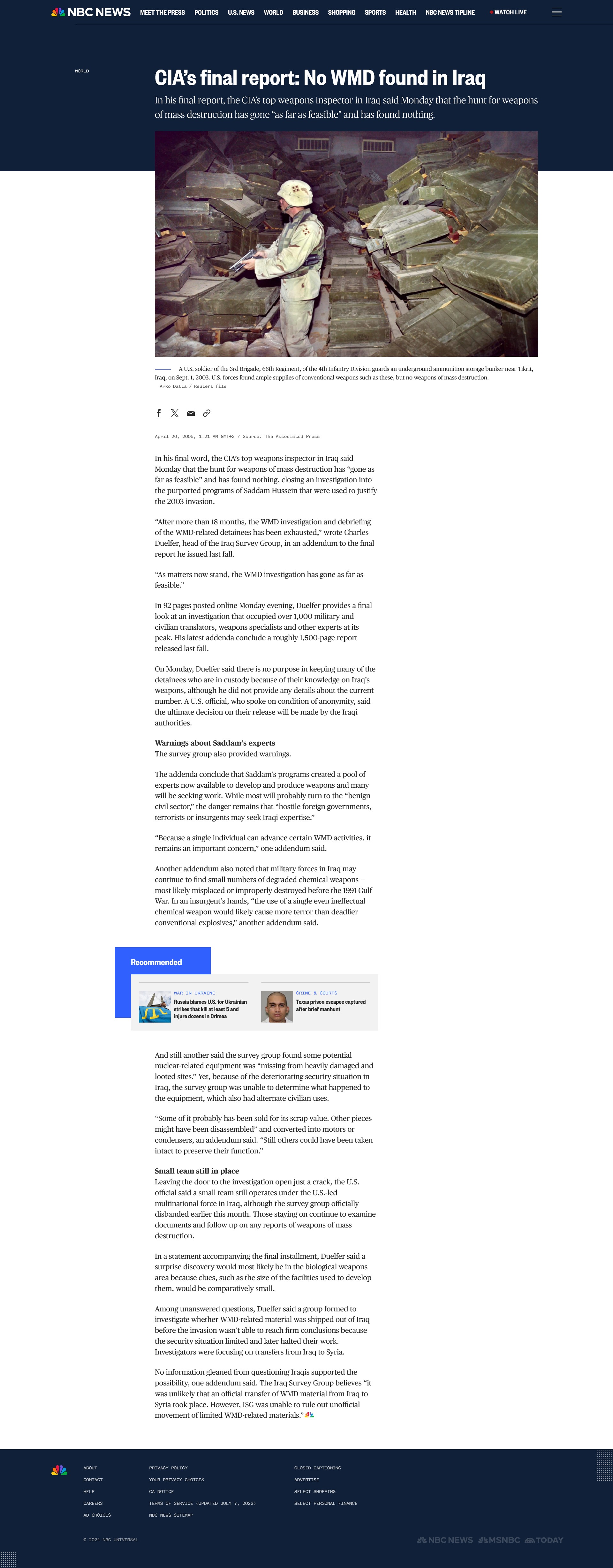 AP - CIA’s final report: No WMD found in Iraq (April 26, 2005)