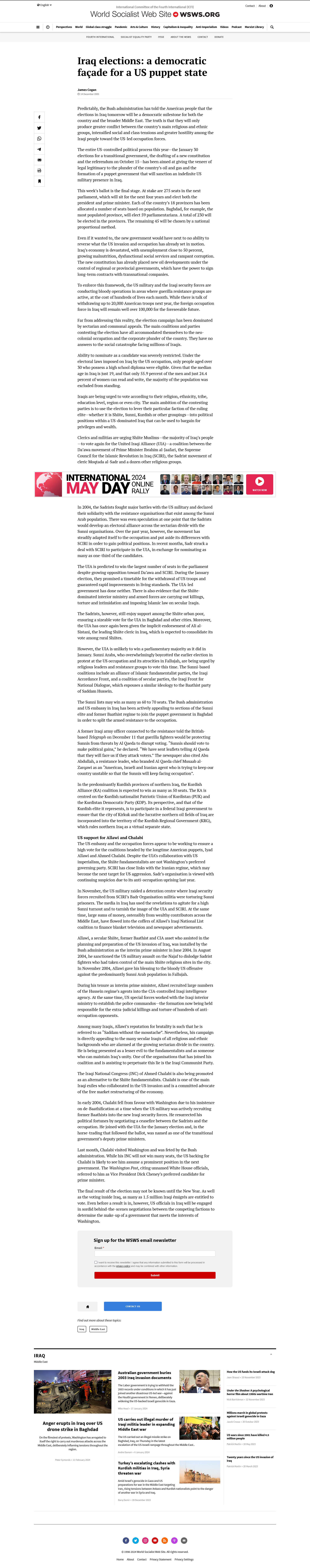 James Cogan - Iraq elections: a democratic façade for a US puppet state