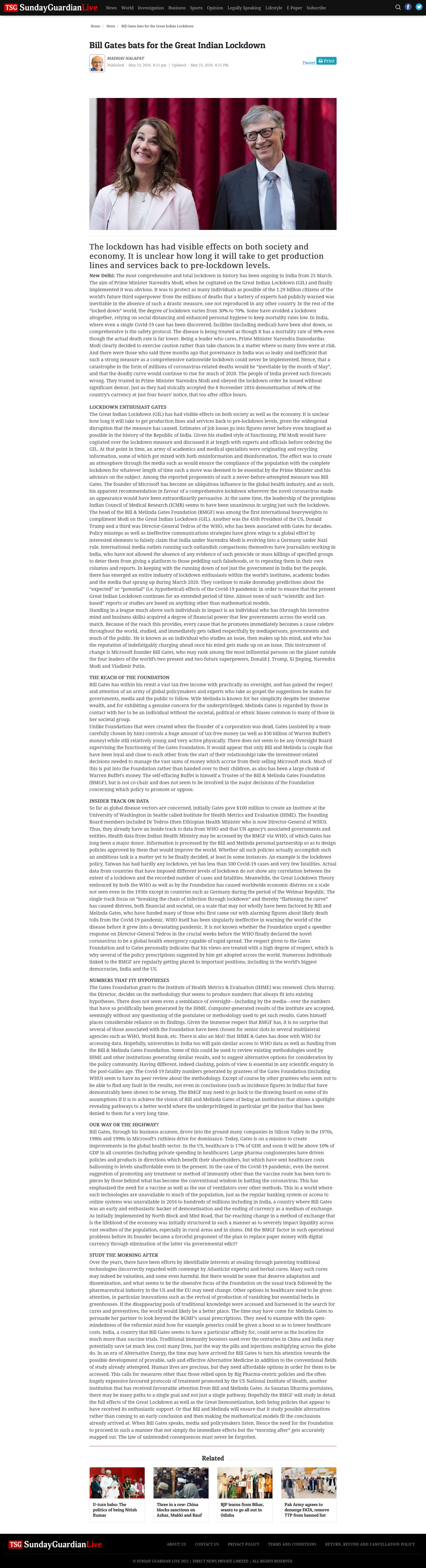 The founder of Microsoft has become an ubiquitous influence in the global health industry, and as such, his apparent recommendation in favour of a comprehensive lockdown wherever the novel coronavirus made an appearance would have been extraordinarily persuasive. At the same time, the leadership of the prestigious Indian Council of Medical Research seems to have been unanimous in urging just such lockdown. The head of the Bill & Melinda Gates Foundation was among the first international heavyweights to compliment Modi on the Great Indian Lockdown. Another was the 45th President of the US, Donald Trump and a third was Director-General Tedros of the WHO, who has been associated with Gates for decades.*