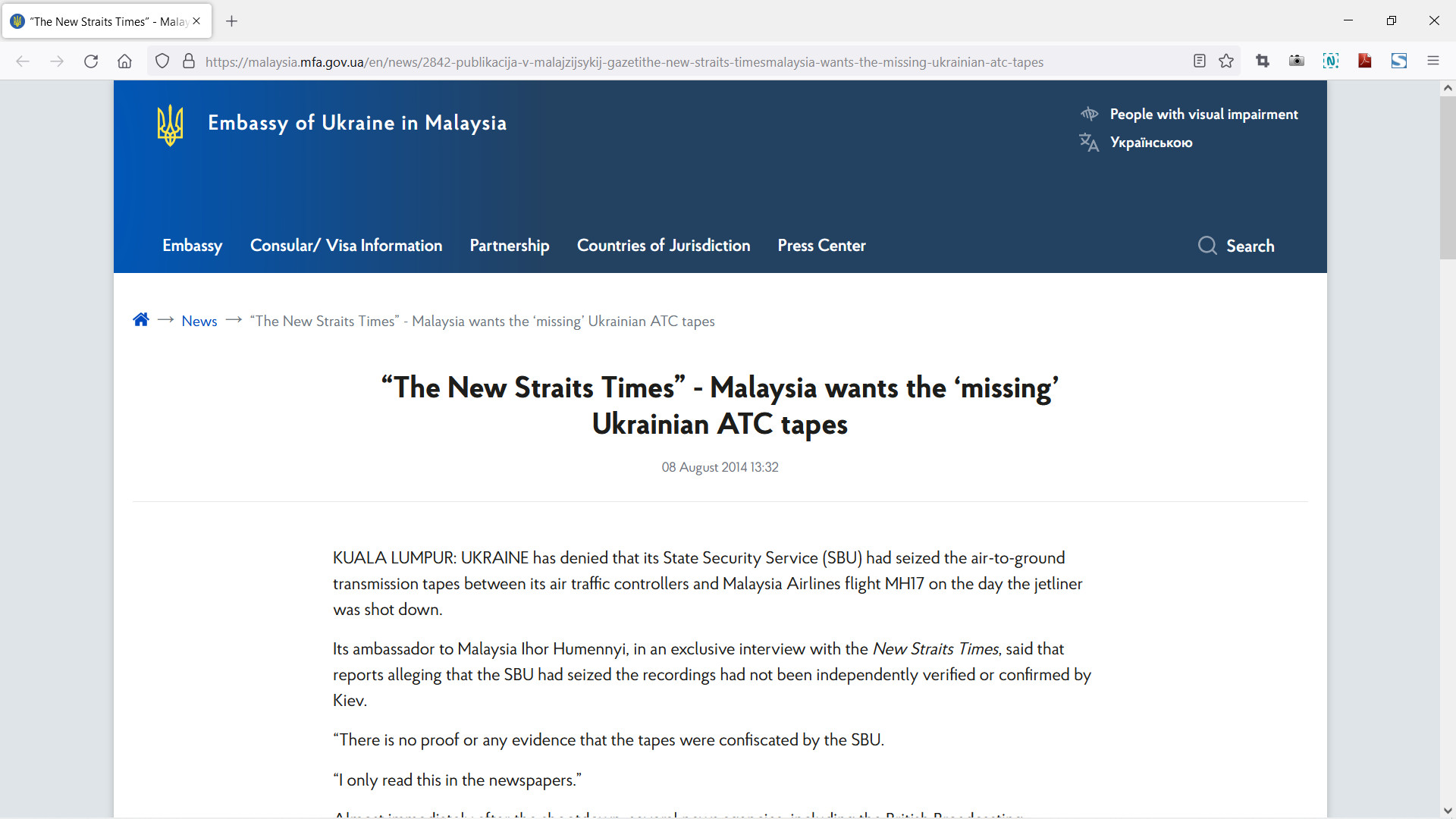 The Ukrainian ambassador to Malaysia Ihor Humennyi later denied that the SBU had confiscated the recordings but couldn't give any evidence*, nor could he explain what happened to the recordings. Obviously, something stinks here. Ukrainian authorities never released the crucial air traffic control data. This is called spoliation of evidence and it makes Ukraine a suspect of the crime. The Ukrainian authorities deliberately obstructed the investigation. Later more about the official MH17 investigation.