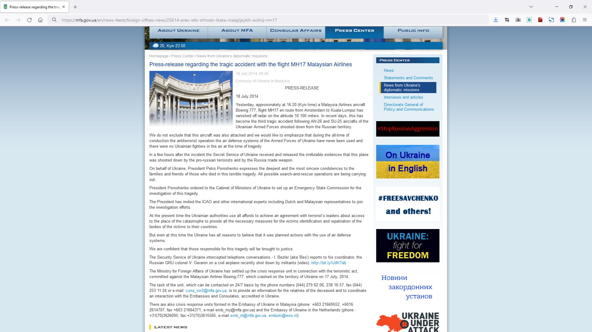 The official press release on 18 July of the Ministry of Foreign Affairs of Ukraine stated...