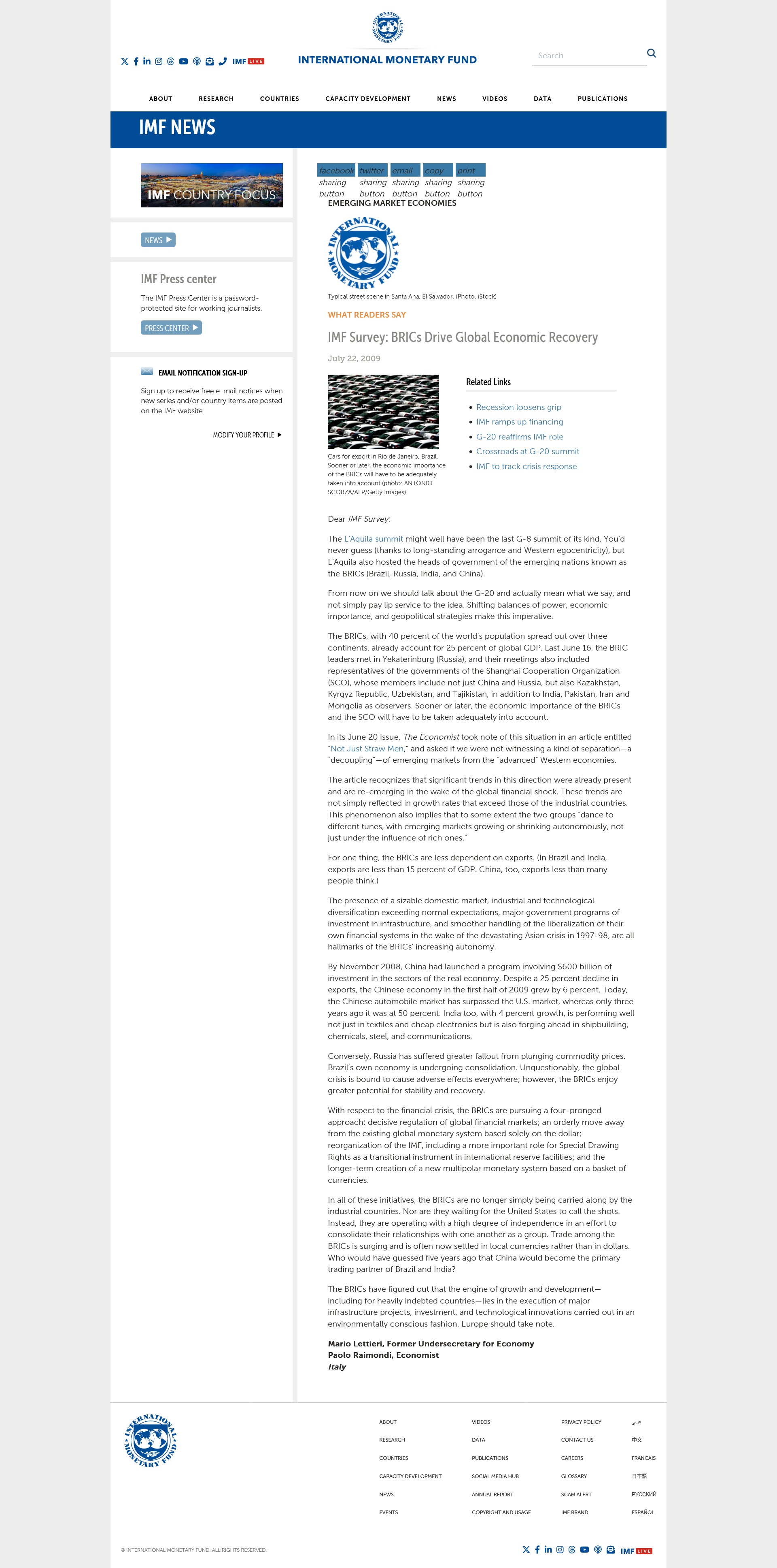 The BRICs are pursuing a four-pronged approach: decisive regulation of global financial markets; an orderly move away from the existing global monetary system based solely on the dollar; reorganization of the IMF, including a more important role for Special Drawing Rights as a transitional instrument in international reserve facilities; and the longer-term creation of a new multipolar monetary system based on a basket of currencies.*