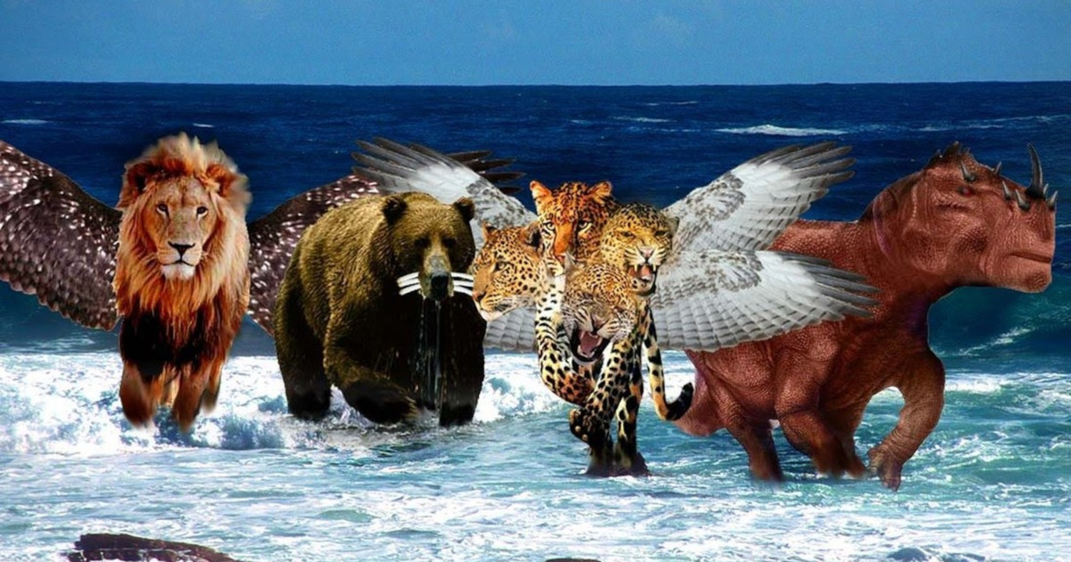 Daniel had a vision in the first year of Belshazzar, the last king of the Babylonian Empire. In Scriptural prophecy beasts symbolize empires or kingdoms. Today we can still see this symbolism. Britain is symbolized by a lion, the United States by an eagle, etcetera. The four beasts came up from the sea. The Great Sea in ancient times referred to the Mediterranean Sea. From a prophetic point of view in the time of the end it likely refers to the human masses of the whole world. In Scriptural prophecy the sea symbolizes peoples and nations in unstable times (Isaiah 51:15, Isaiah 17:12, Luke 21:25). Thefour winds of heavensymbolize God's power or divine intervention (Jeremiah 49:36, Jeremiah 18:17, Zechariah 2:6).