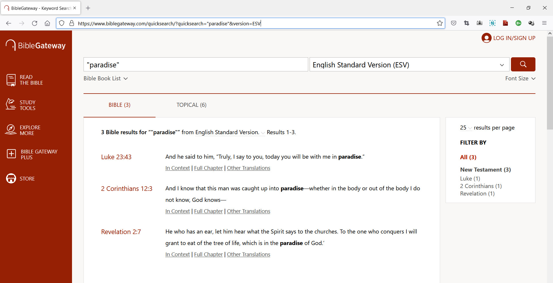 The word "paradise" is used in total 3 times in the Scriptures (ESV), all of them in the New Testament. What is paradise?