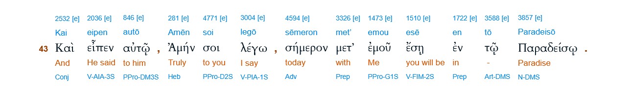 And he said to him, “Truly, I say to you, today you will be with me in paradise.”